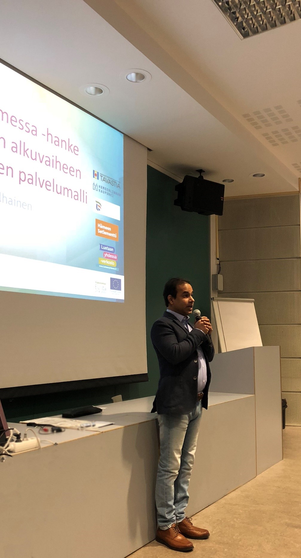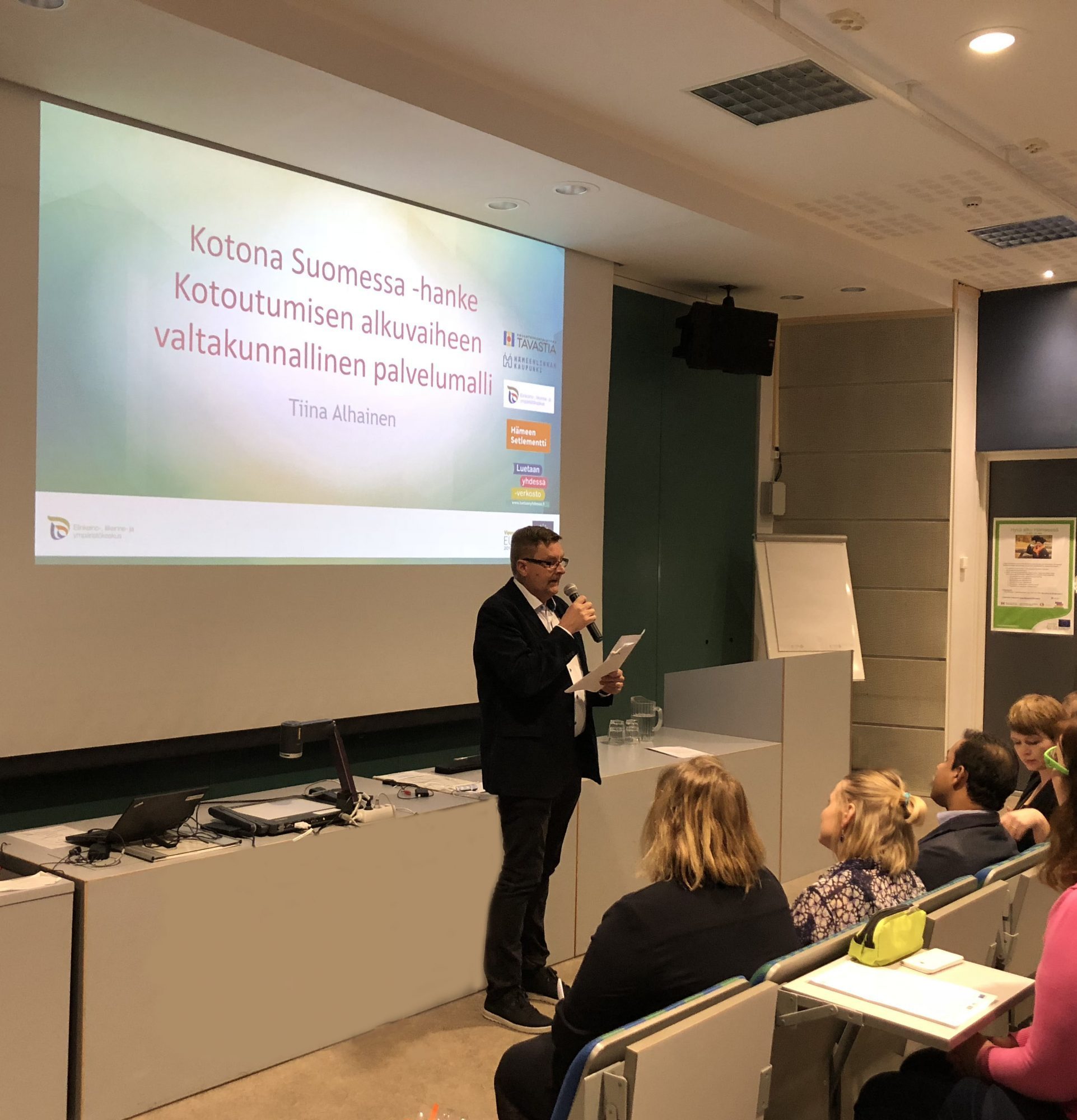 Hyvä alku Hämeessä -hankkeen projektikoordinaattori Tiina Alhainen avasi uutta Kotona Suomessa -hanketta − kotouttamisen palvelumallia. Se on suunniteltu jatkossa kotouttamisen parissa työskenteleville, esimerkiksi sitä suunnitteleville ja johtaville. Hankkeessa oli luotu suunnittelukirja, jotta osattaisiin toimia laadukkaasti ilman päällekkäisiä prosesseja.