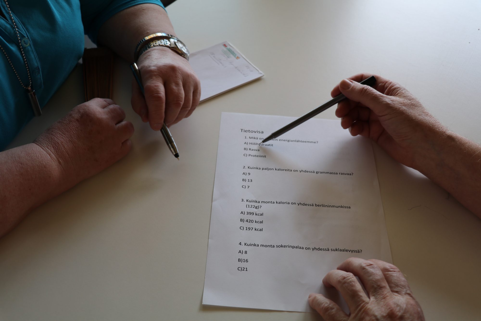 Opiskelijat olivat suunnitelleet neljä pistettä, joissa jokaisessa oli eri elämänalueisiin liittyviä tehtäviä. Ensimmäiseksi oli vuorossa ravitsemuspiste, jossa tehtiin opiskelijoiden laatima tietovisa sekä maisteltiin silmät erilaisia makuja. Maistatusosioon oli liitetty pienet tietoiskut maistelluista ruuista.