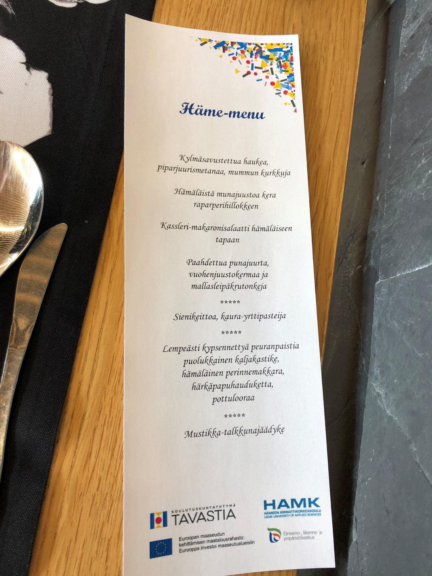 Menu on kokonaisuutena maistuva ja tuo esille hämäläiset maut, mikä onkin hienoa. Menua kannattaa kyllä mennä maistamaan heti kun se on saatavissa Hämeen ravintoloissa.