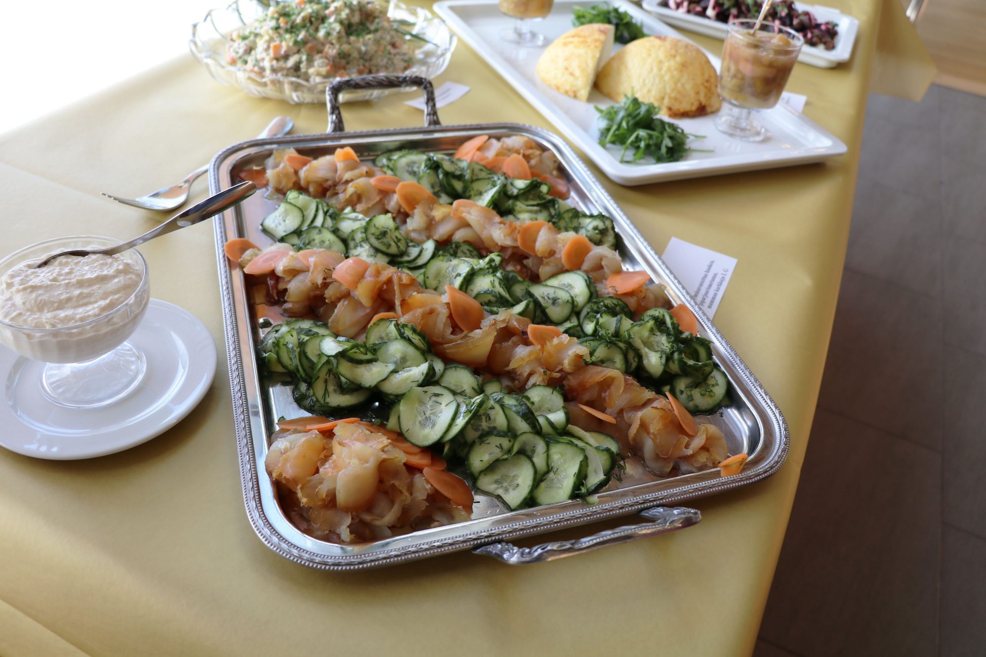 Menun alkuruuissa ilahdutti erityisen paljon kylmäsavustettu hauki sekä munajuusto raparperihillokkeen kera. Pääruuissa oli vaihtoehtoja niin kasvissyöjille kuin lihasta pitäville: muun muassa peuranpaistia, härkäpapuhauduketta unohtamatta perinteistä pottulooraa. Jälkiruokana oli kirjaimellisesti suussa sulavaa mustikka-talkkunajäädykettä. Koko menu on nähtävissä kuvissa.