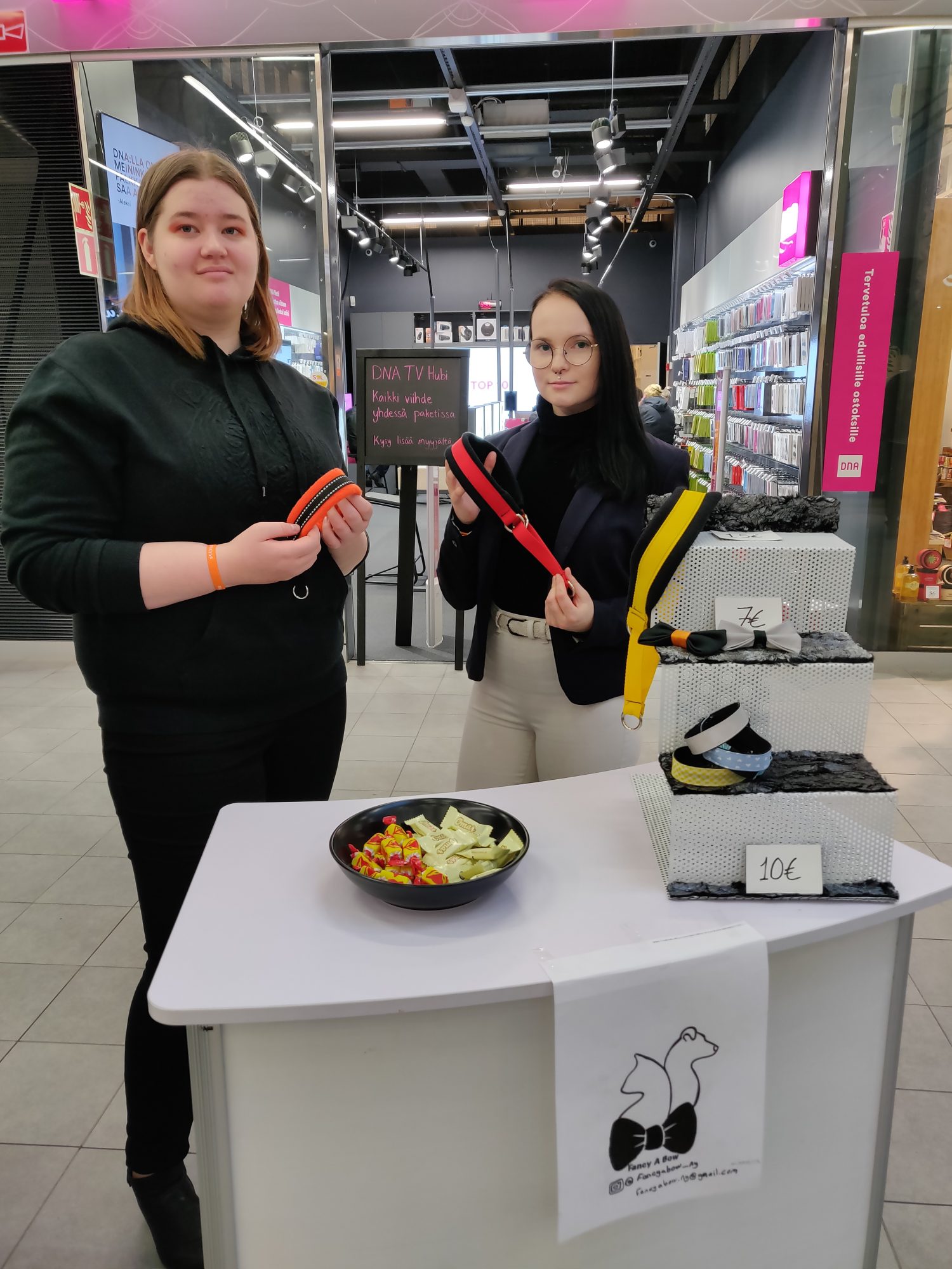 Koirille ja kissoille pantoja ja rusetteja myyvän Fancy A Bow NY -yrityksen Oona Ingman ja Satu Uotila puolestaan kertoivat käyttävänsä materiaaleina Ammattiopisto Tavastian ompelijoiden ja verhoilijoiden ylijäämäkankaita. Pannat ja rusetit ovat itse tehtyjä.