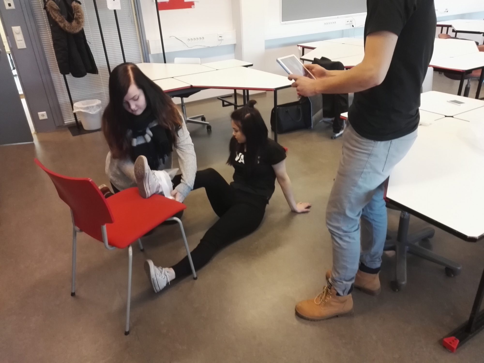 Toteutimme yhteistyön, jossa lähihoitajat opettivat ensiaputaitoja merkonomeille, jotka taas kuvasivat toimenpiteet ja muokkaavat otoksistaan myöhemmin ohjevideoita mm. painesiteen solmimisesta, kylkiasentoon laittamisesta ja heimlichin otteesta. Opiskelijat pitivät kokeilusta, joka toi vaihtelua normaaliopetukseen.