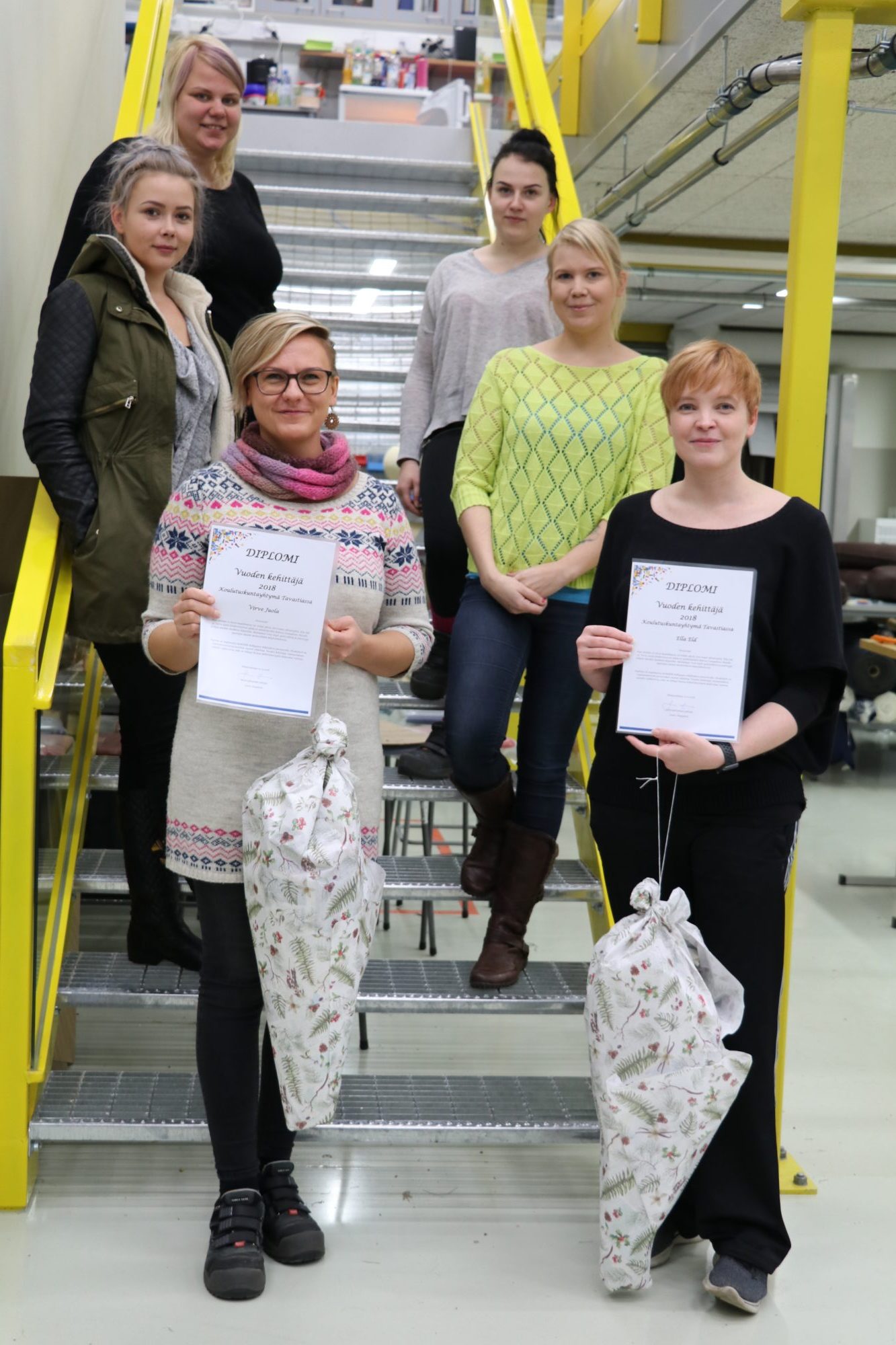 Perustelut tunnustukselle olivat seuraavat: kun mitään ei tässä maailmassa voi tehdä yksin, tarvitaan yhteistyötä. IT-suunnittelija Ella Eld ja verhoilualan opettaja Virve Juola konkretisoivat yhdessä opiskelijoiden kanssa visuaalisen Moodle-pohjan meidän kaikkien käyttöön. Molemmat ovat myös ystävällisiä ja pidettyjä opastajia uusien menetelmien käyttöönotossa.