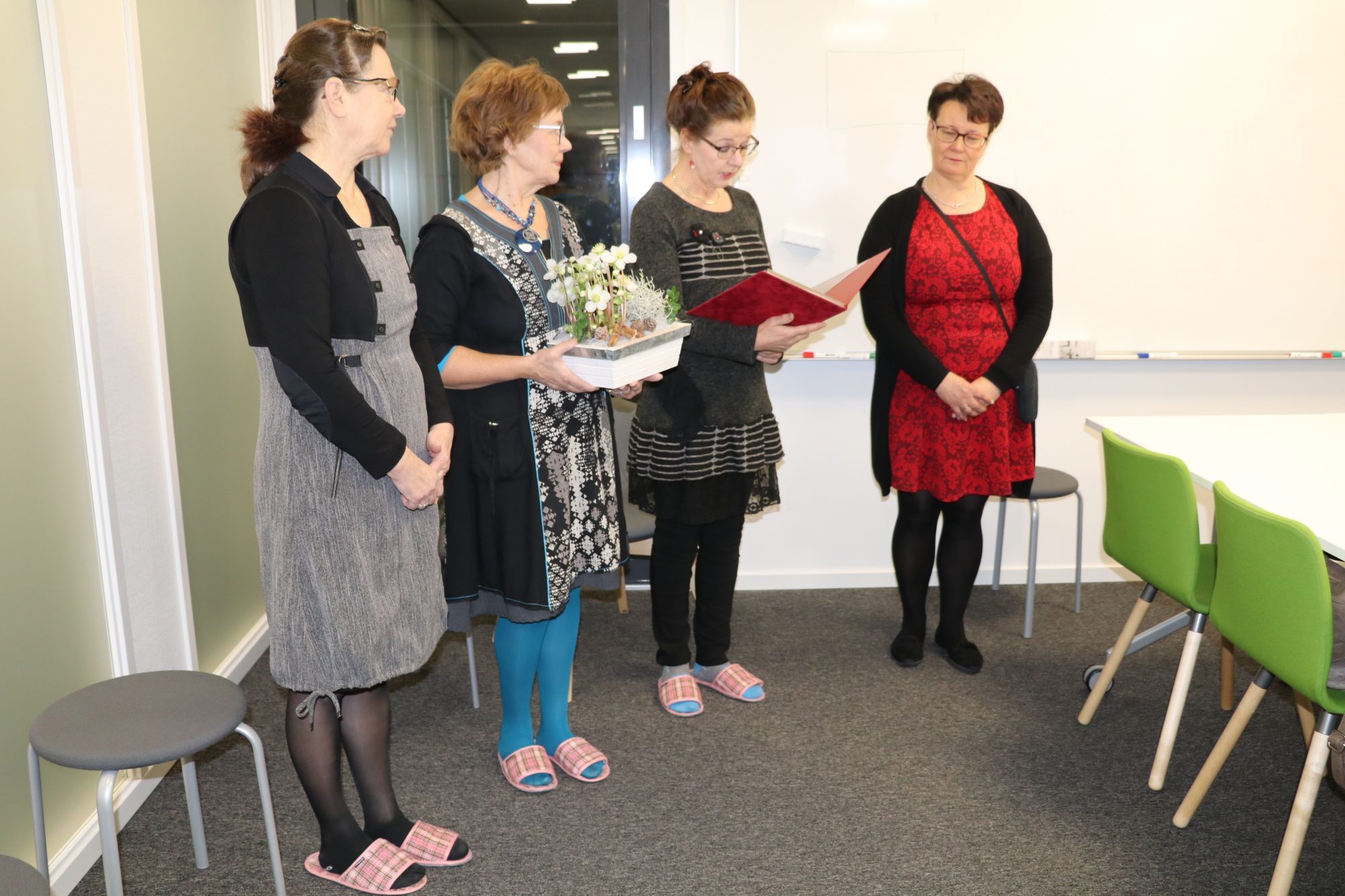 Vuoden oppisopimustyöpaikka -tunnustuksesta oltiin myös ilahtuneita Kanta-Hämeen keskussairaalan Sairaala- ja välinehuoltopalveluissa. Koulutuspäällikkö Tuovi Korkeakoski luovutti diplomin työpaikalle torstaina 20. joulukuuta. Diplomin vastaanotti palvelupäällikkö Jaana Helenius, joka osan työajastaan tekee palvelupäällikkönä Sairaala- ja välinehuollossa. Toinen osa kuluu suunnitteluryhmässä, joka suunnittelee uutta Assi-sairaalaa (Kanta-Hämeen keskussairaalan tilalle valmistuu uusi sairaala vuonna 2024. Mukana diplomin jakotilaisuudessa oli koulutuksissa mukana olleita/olevia palveluesimiehiä, palveluohjaajia ja yksi osastonhoitaja.