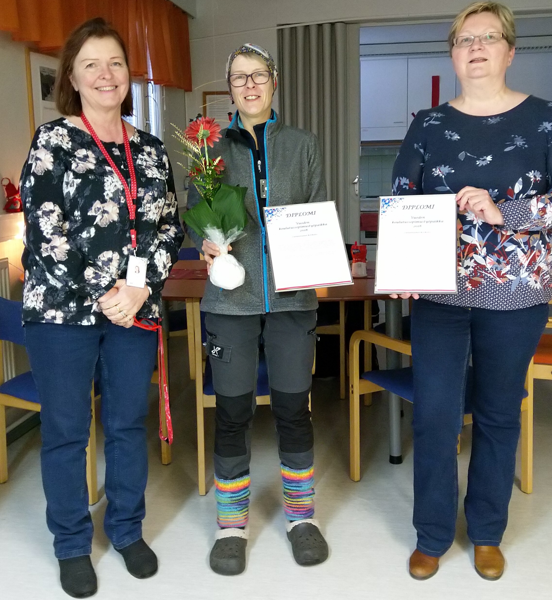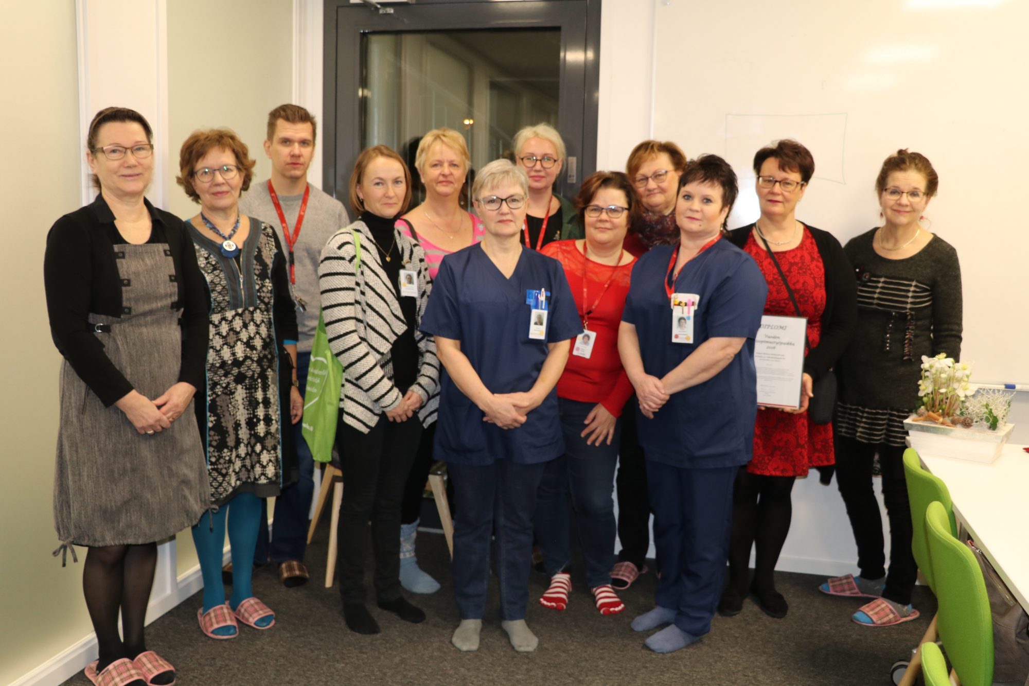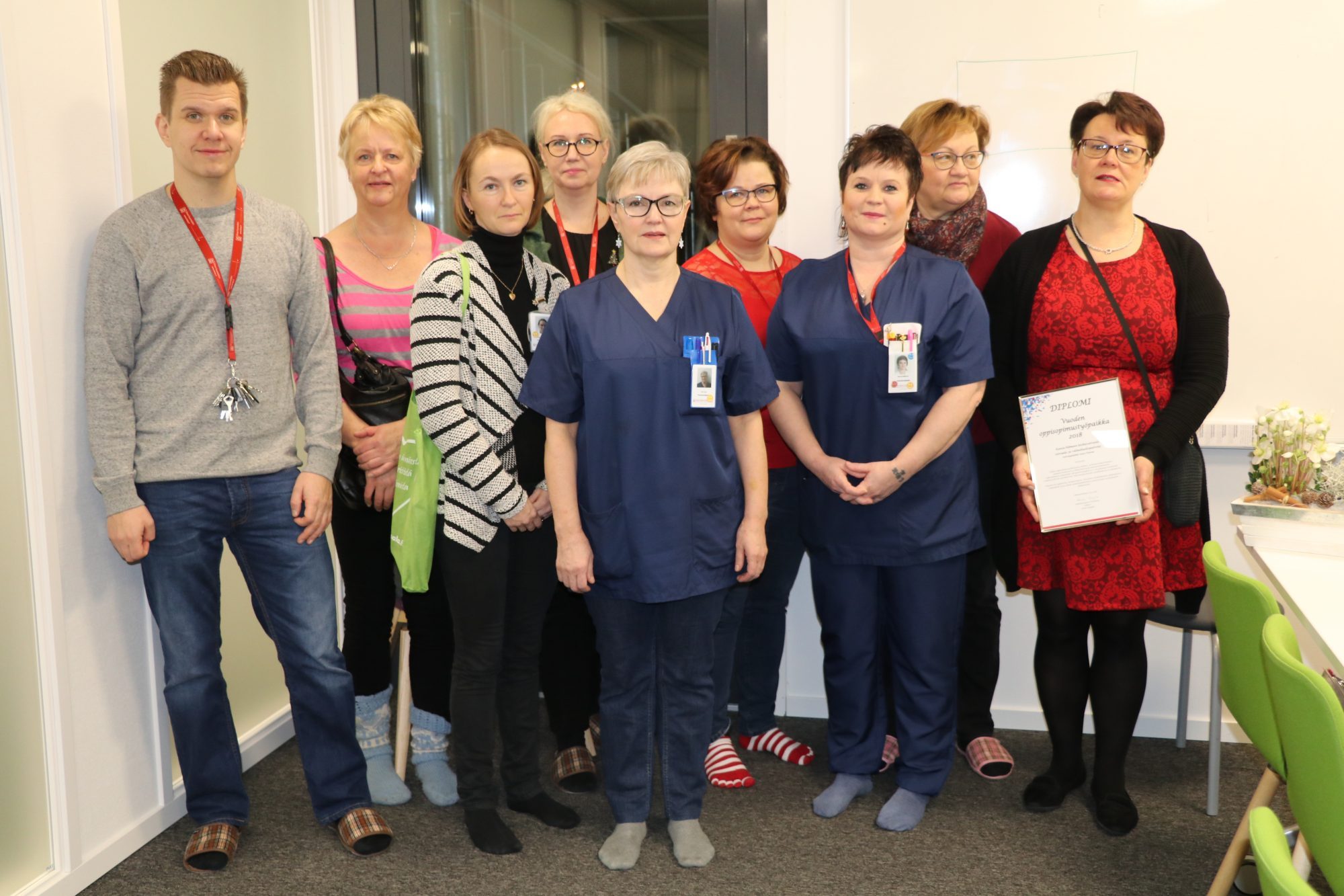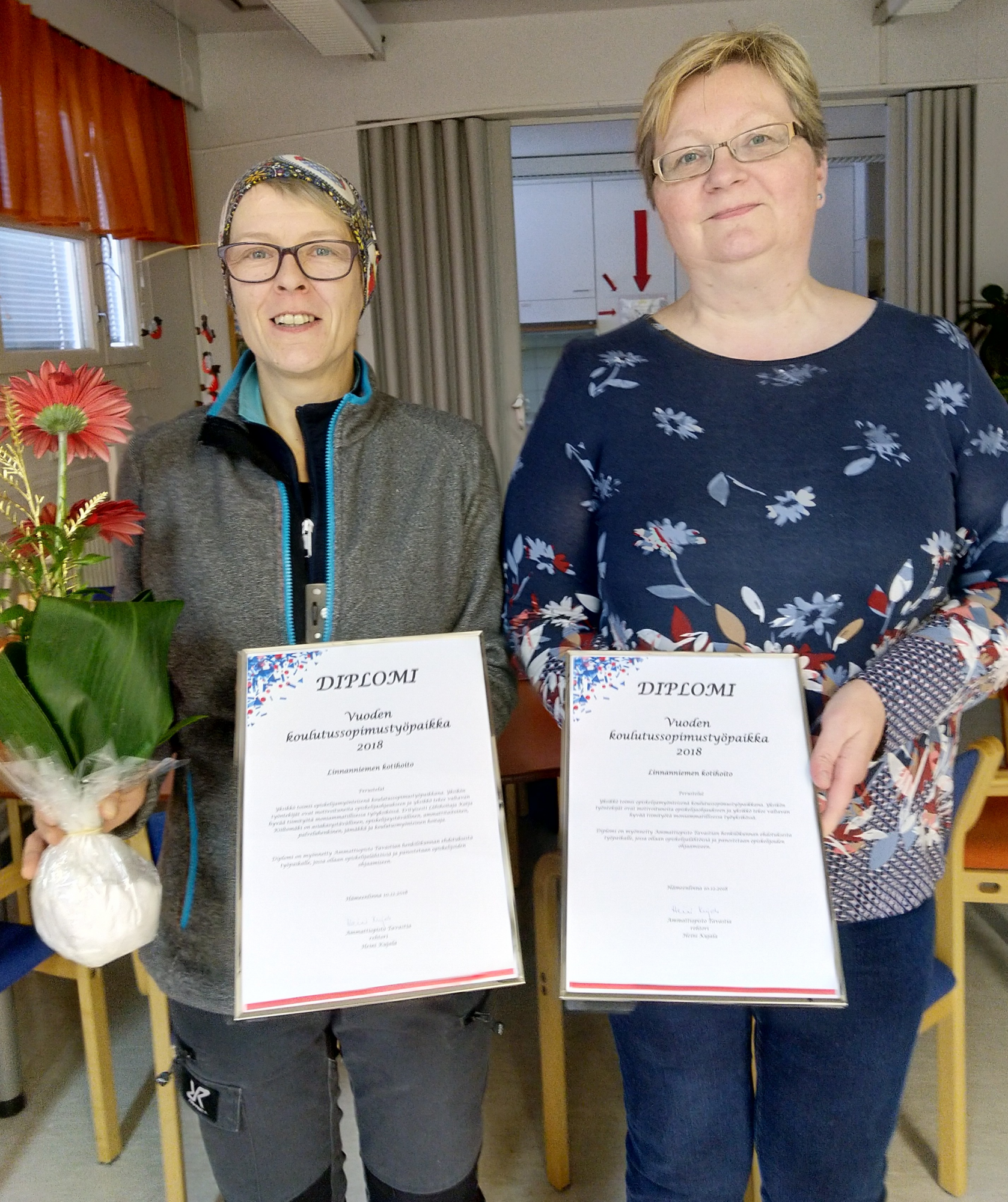 Perustelut: yksikkö toimii opiskelijamyönteisenä koulutussopimustyöpaikkana. Yksikön työntekijät ovat motivoituneita opiskelijaohjaukseen ja yksikkö tekee valtavan hyvää tiimityötä moniammatillisessa työyksikössä. Erityisesti lähihoitaja Katja Kiiltomäki on asiakasystävällinen, opiskelijaystävällinen, ammattitaitoinen, palveluhenkinen, jämäkkä ja koulutusmyönteinen hoitaja.