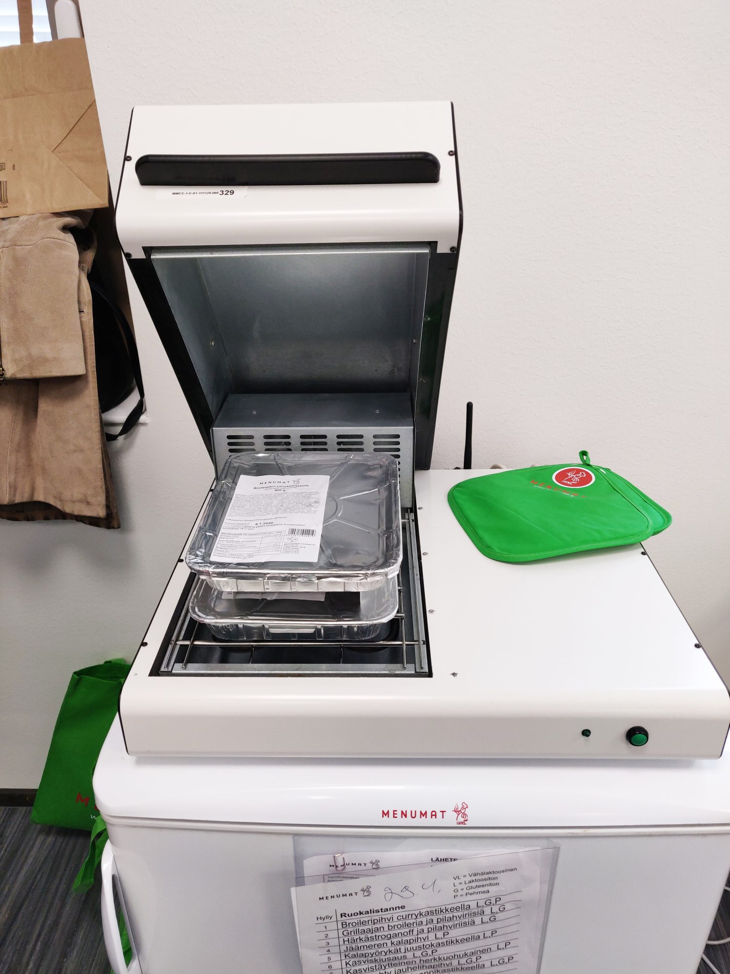 Menumat on toinen Terveys- ja hyvinvointialan uusista laitteista. Menumat on ateriapalvelu, jossa asiakkaan kotiin tuodaan pieni pakastin, jonne mahtuu 18 ateriaa, sekä pakastimen päällä oleva pieni kiertoilmauuni, joka lämmittää aterian. Menumatilla on laaja ruokalista, josta asiakas voi valita itselleen mieluisimmat ruuat ja ne toimitetaan suoraan kotiin. Menumatin edustaja täyttää pakastimen ja ohjelmoi samalla laitteen, joka toimii puheohjauksella. Laite opastaa asiakasta toimimaan oikein, eikä koko laitteessa ole kuin yksi nappi, jota painamalla Menumat kertoo, mitä tehdä. Ruoan valmistus on myös mahdollista ajastaa tiettyyn kellonaikaan, ja laite onkin kotihoidon asiakkaiden sekä omaishoitajien suosiossa.