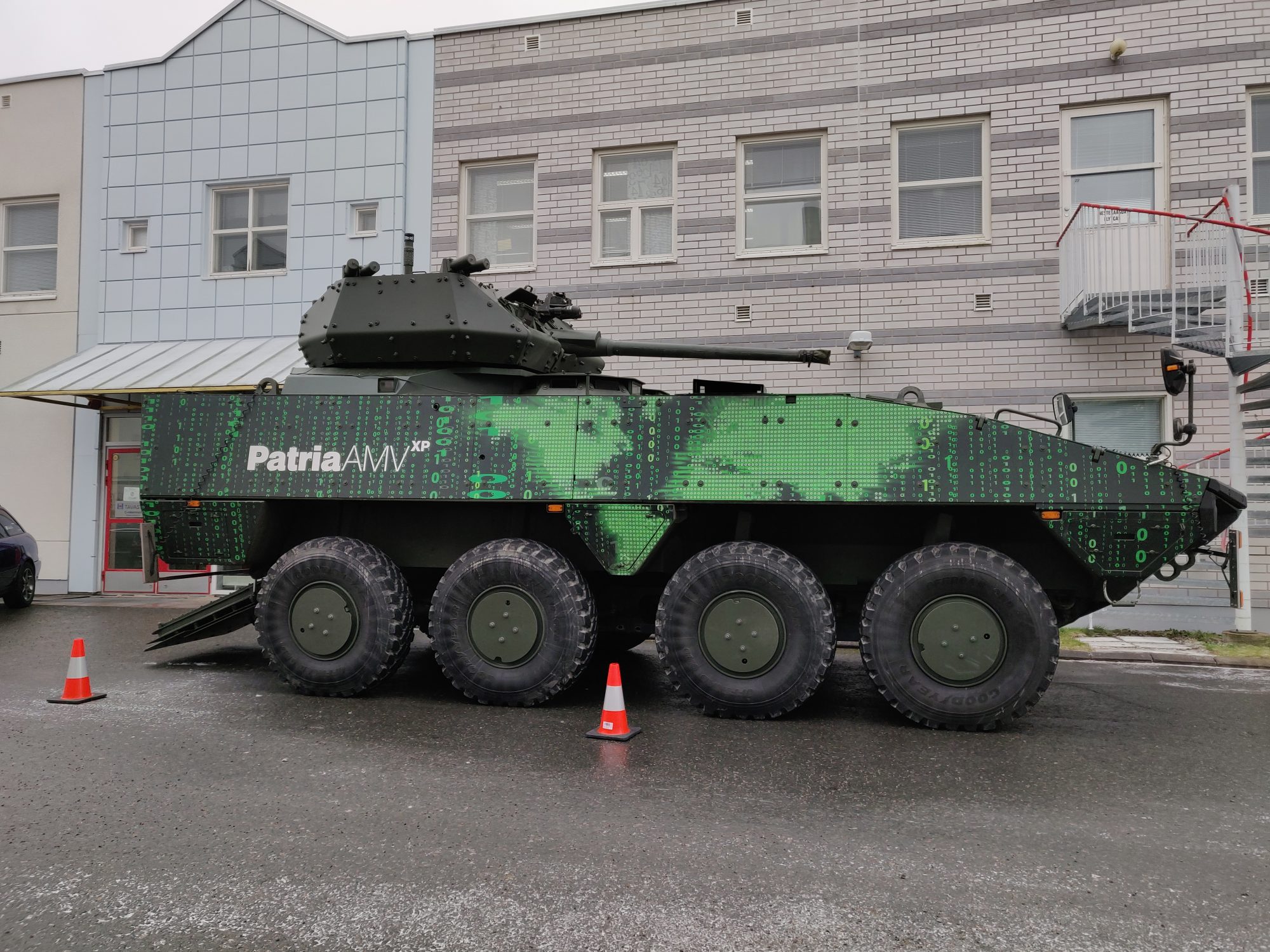 Patria oli tuonut piha-alueelle nähtäväksi myös panssarivaunun. Vaunu ja sen toiminnot kiinnostivatkin opiskelijoita kovasti.