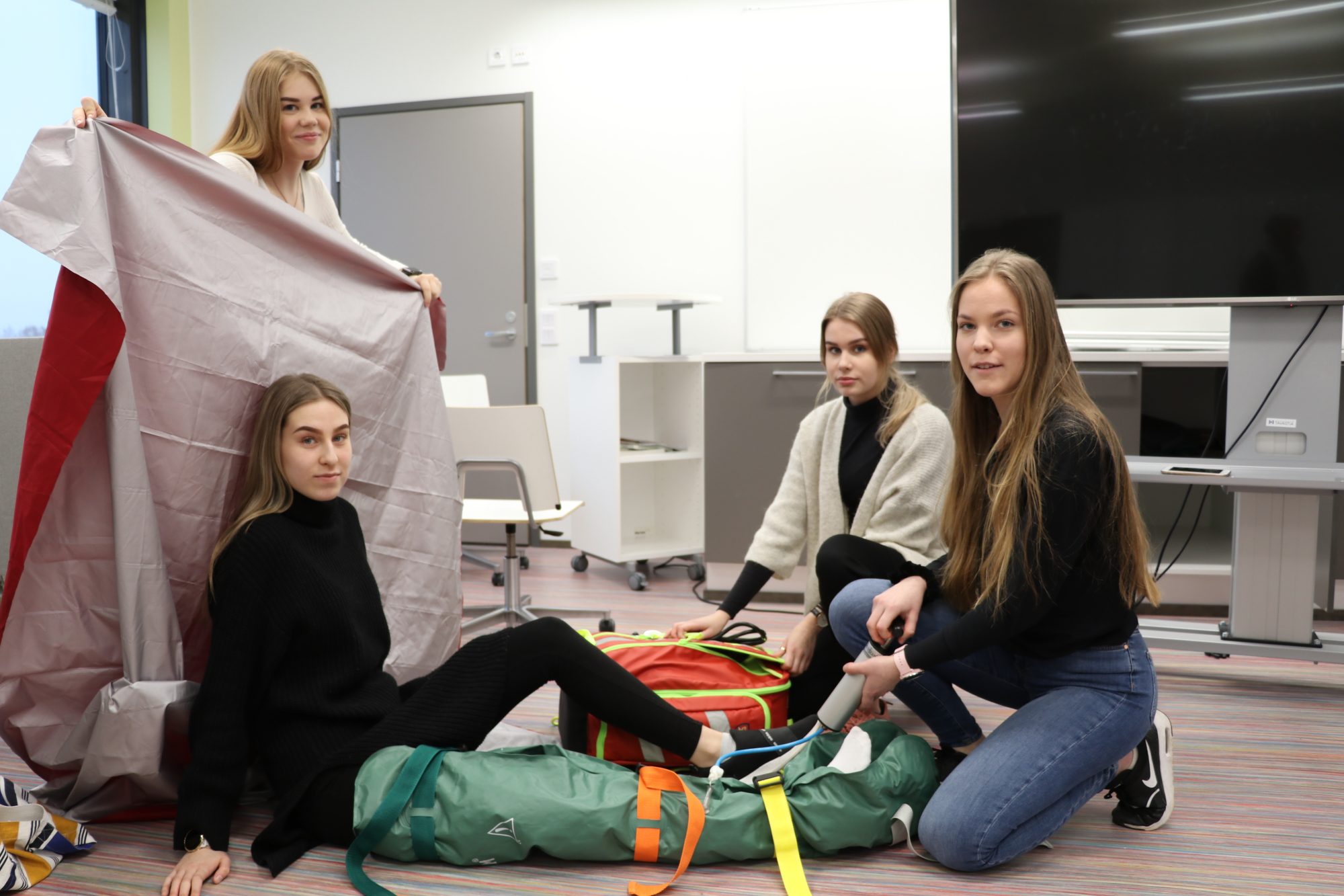 – Meillä on ollut seitsemän TJK-jaksoa, ja jokainen on suoritettu eri paikoissa. Olemme olleet muun muassa päiväkodeissa, päivystyksessä, vanhustenhoidossa ja yliopistollisissa sairaaloissa. Ongelmana vähän on, että monet TJK-paikat sijaitsevat kaukana Hämeenlinnasta, kertovat opiskelijat Lotta Heikkilä, Hanna Saloheimo, Camilla Vehmas, Suvi Peltonen sekä Anni Jamisto.