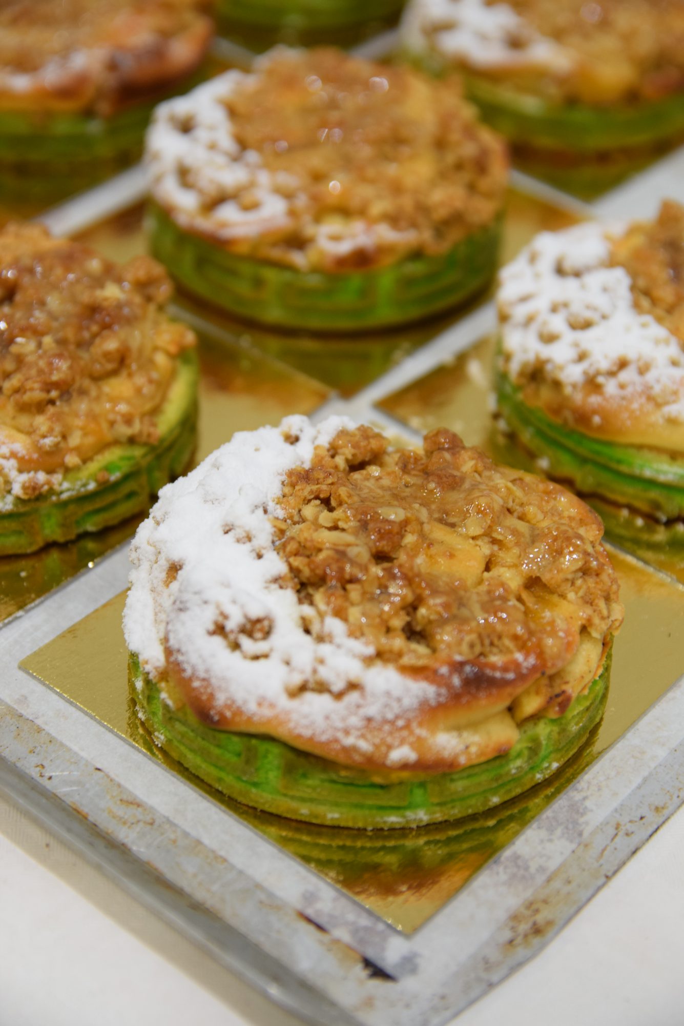 – Vapaavalintaisina tuotteina teimme mustaherukan makuisen moussekakun ja kahvileipänä toffee-vanilja-omena-täytteisen pullan, jonka reunalla oli koristepohja, Pellikainen ja Nejati kertovat.