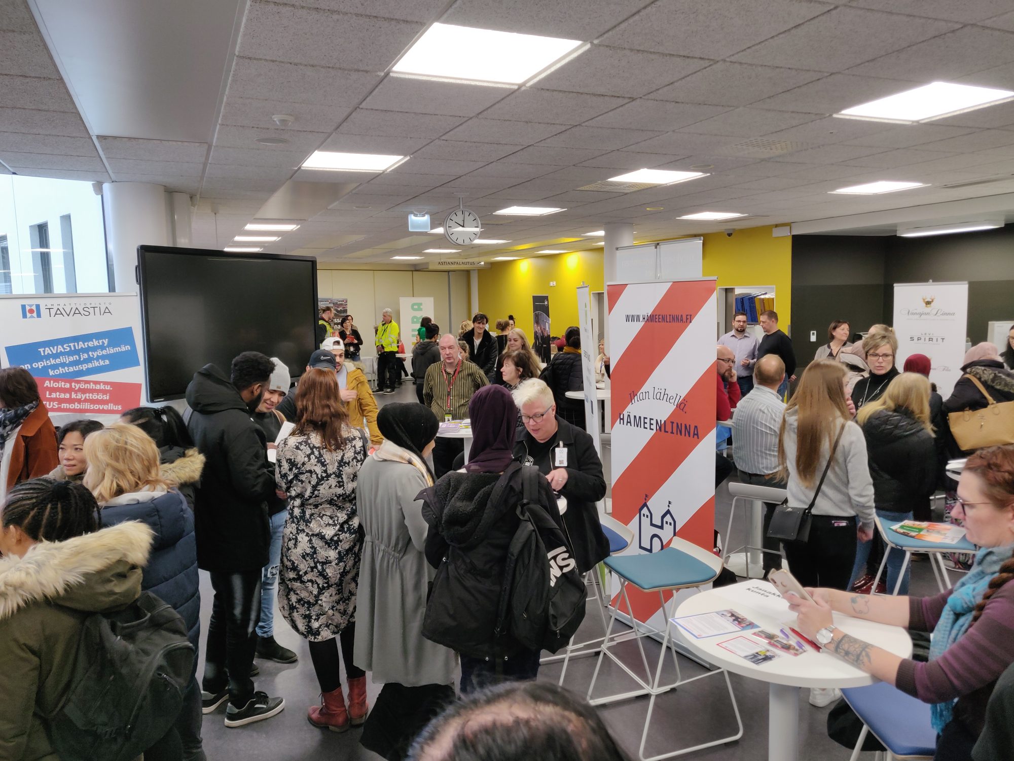 TAVASTIA-Rekry järjestettiin torstaina 20.2. jo neljättä kertaa. Ammattiopisto Tavastian S-rakennuksen aulassa esitteli toimintaansa reilut parikymmentä yritystä, jotka kaipasivat uutta työvoimaa. Lisäksi paikalla oli muun muassa Linnan Kehitys, joka keräsi tärkeää tietoa kaupungin vetovoimatekijöistä sekä Hämeen Uusyrityskeskus, joka jakoi infoa yrityksen perustamisesta. Myös Tavastian Ohjauspiste sekä yrittäjyystiimi olivat rekryssä neuvomassa ja opastamassa.