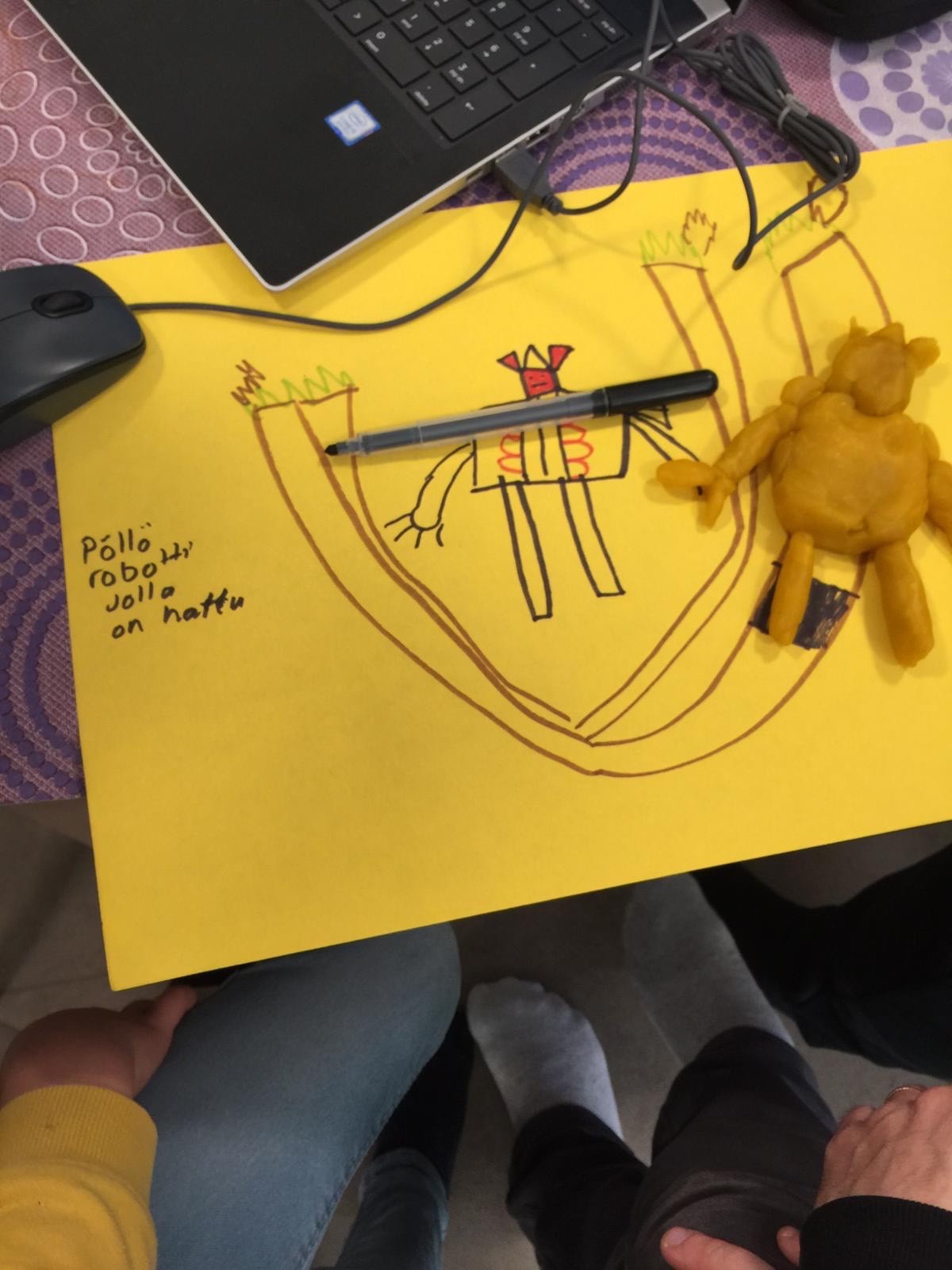 – Opiskelijat joutuivat miettimään, miten kertoa pienille lapsille hankalasti hahmotettavasta aiheesta. Opiskelijat kertoivat lapsille ensin, että jokaiselle tehdään pieni mielikuvitushahmo, jonka jälkeen lapset saivat suunnitella oman hahmonsa pöydän ääressä joko piirtämällä tai muovailemalla. Sen jälkeen opiskelija meni lapsen kanssa tutustumaan 3D-tulostimeen, ja yhdessä Kiipulan datanomiopiskelijan kanssa hahmo luotiin tietokoneelle, kertoo Jaana Haajanen.