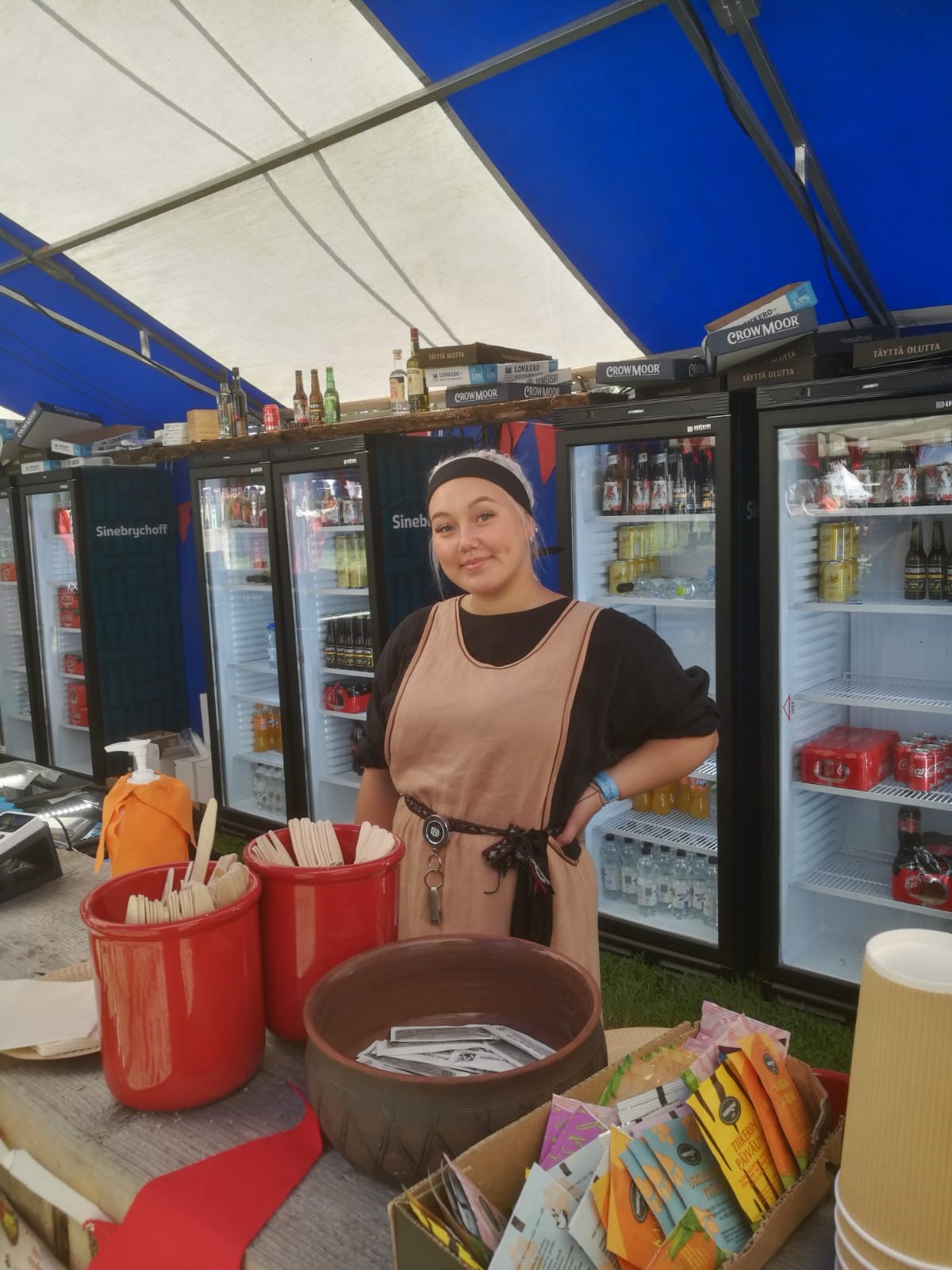 Opiskelijat pääsivät festivaaleilla monenlaisiin hommiin. Toisen vuoden opiskelija Hilma Kuittinen vietti viisi päivää töissä festivaalialueen tavernassa.